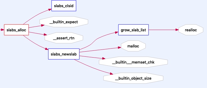 其中被slab.c以外的文件调用的函数有slabs_alloc、slabs_free、slabs_init和slabs_stats