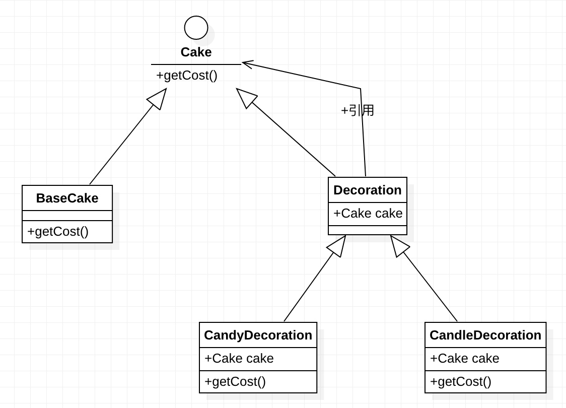 不同装饰的蛋糕是在基础蛋糕上应用不同的行为,比如这里是价格的修改,这种情况就可以使用装饰模式实现了